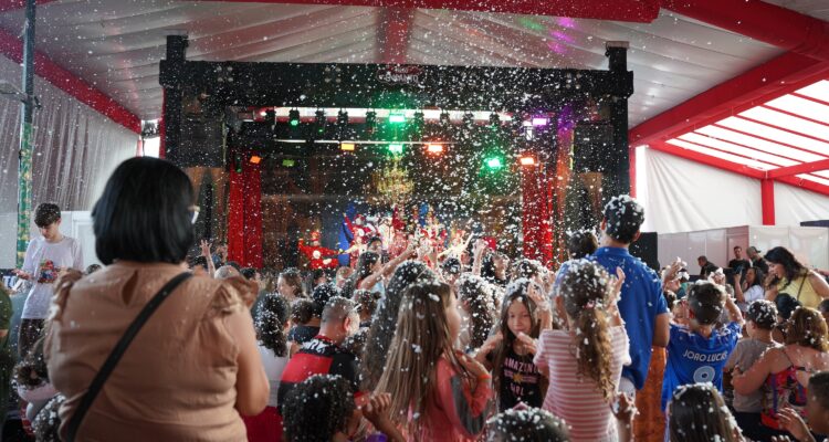 A chegada do Papai Noel e a apresentação do espetáculo musical Christmas Show encantou as famílias na manhã de sábado (13)